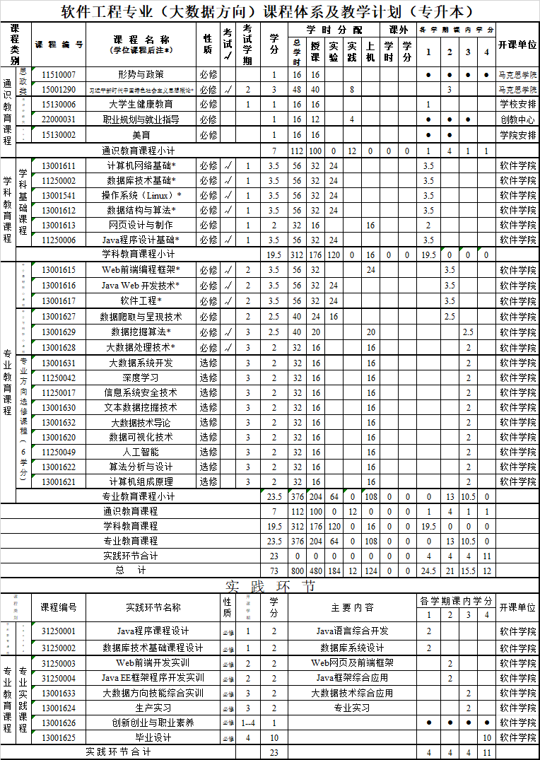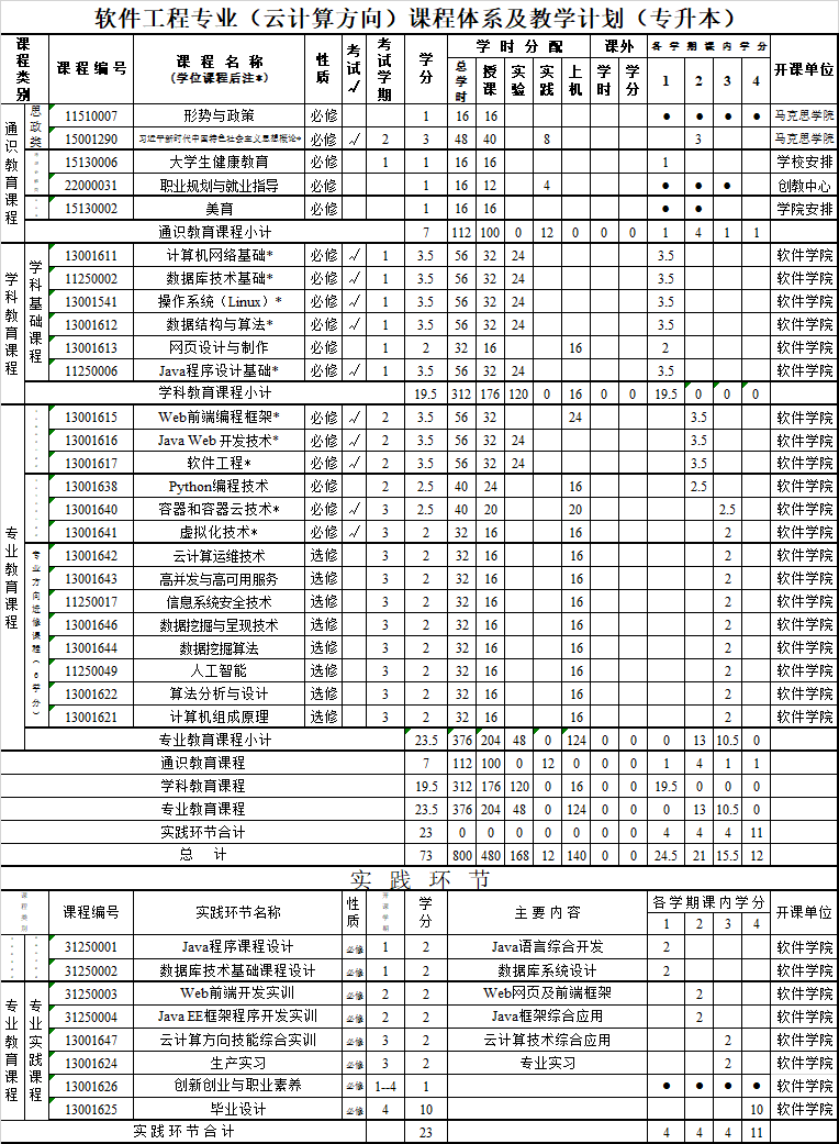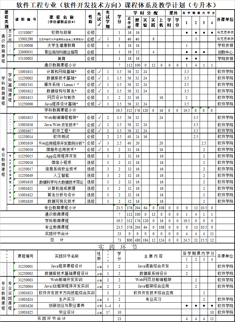 执行学院: 软件学院 2024年入学适用 二年制专升本学生